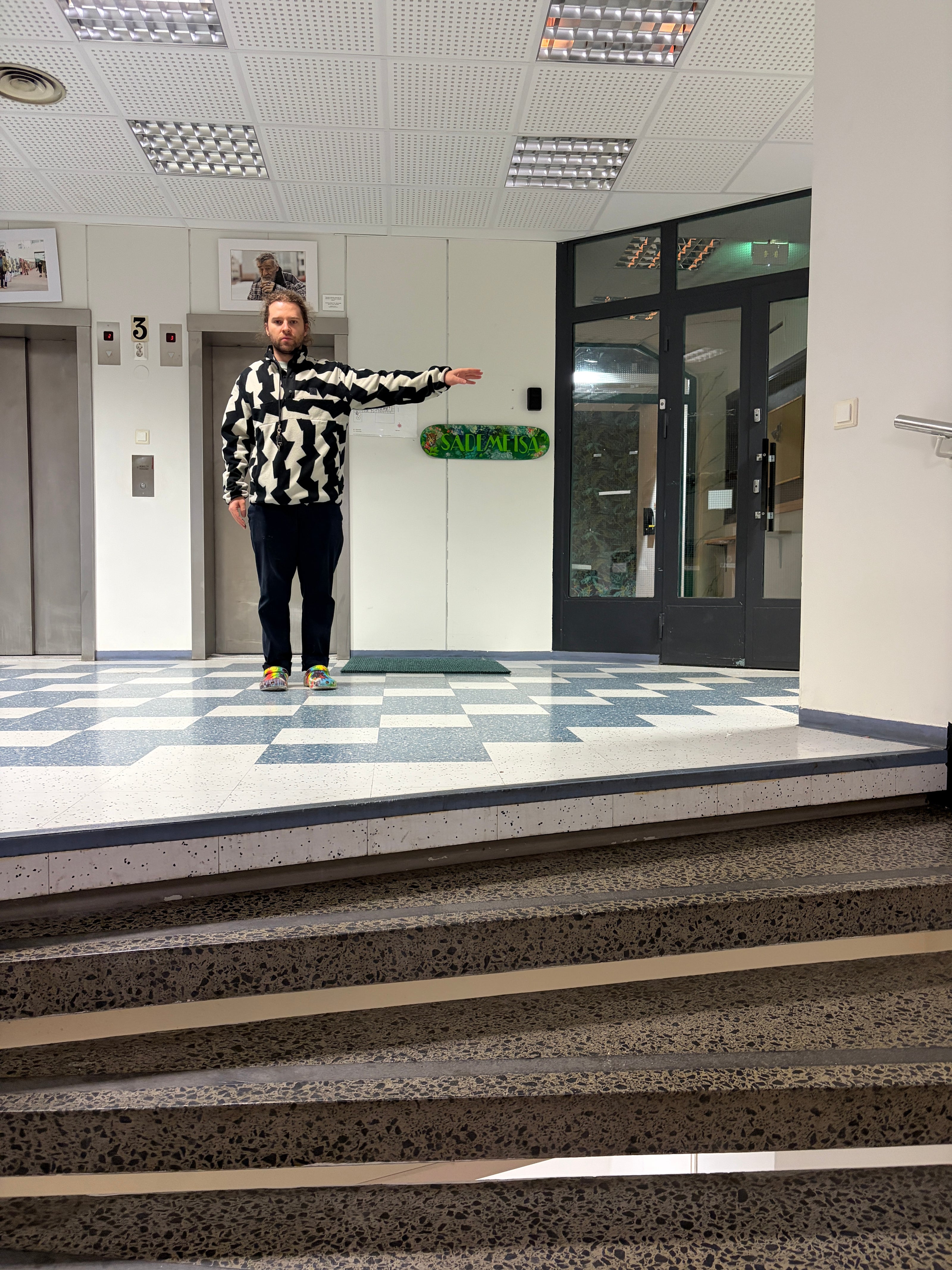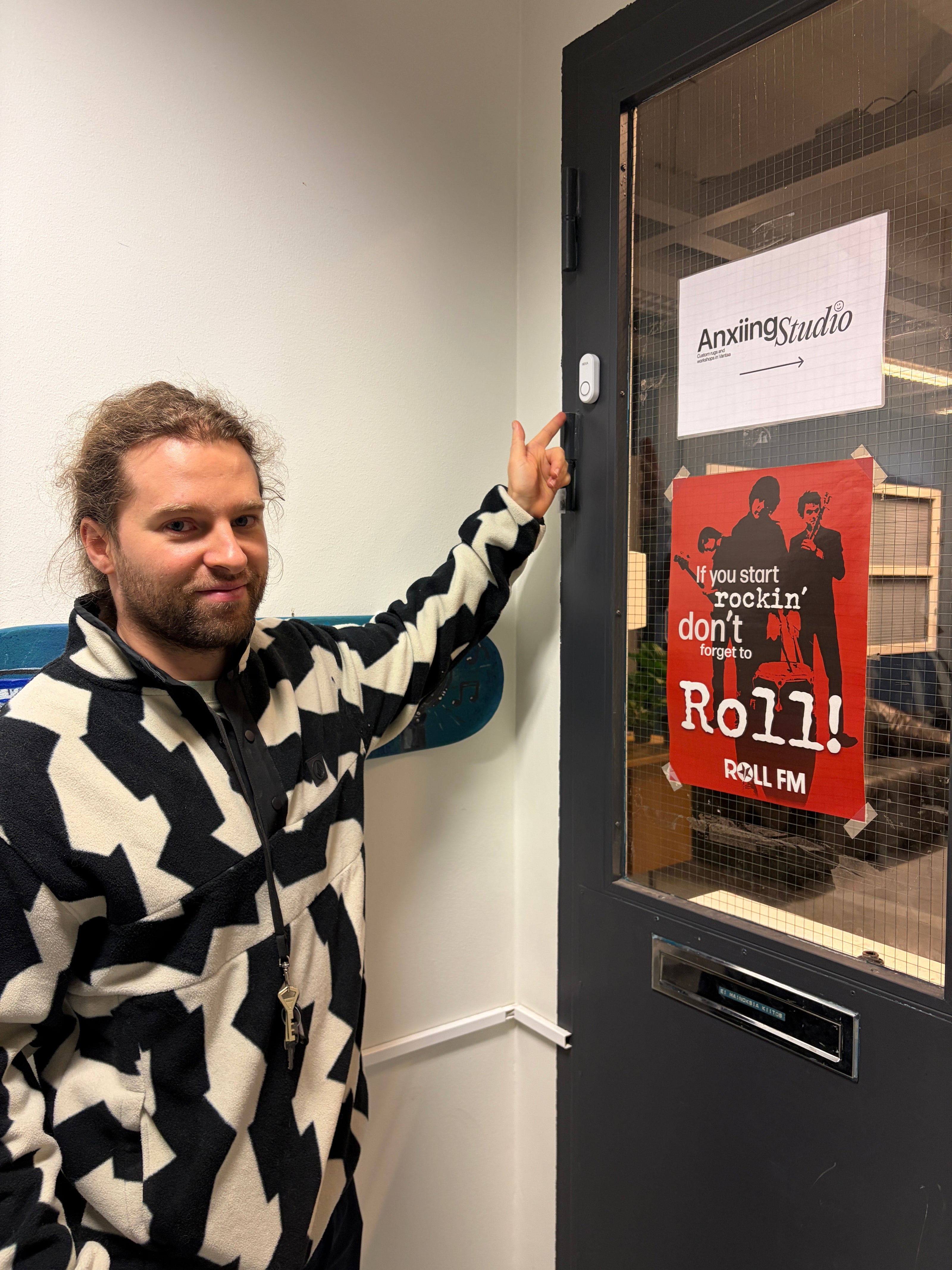 The entrance is near the Myyrmäen apteekki. On the second floor to the left there is a lobby with the doorbell with our name ("Anxiing Studio").