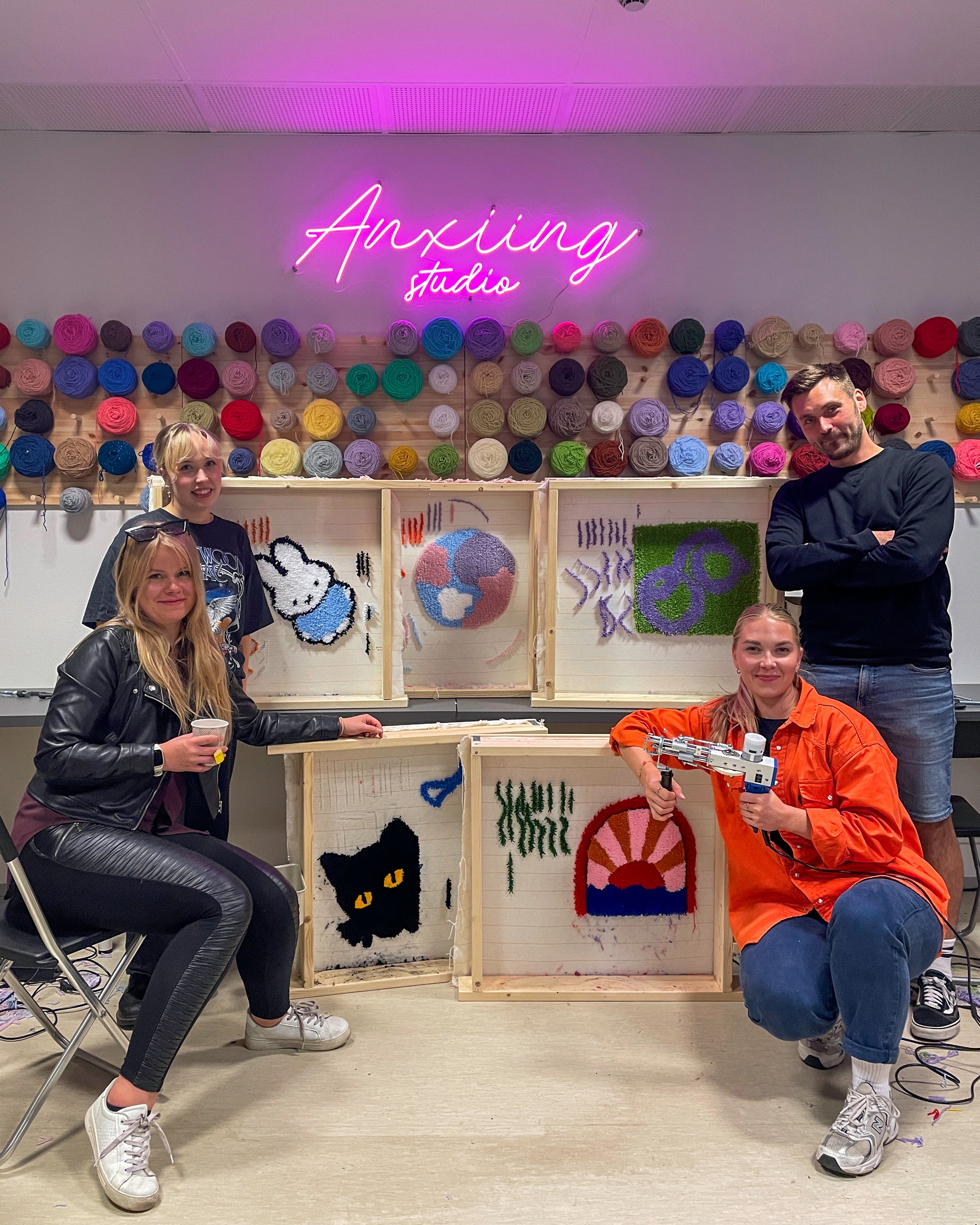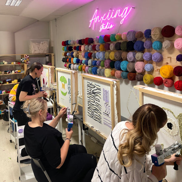 The workshop is not difficult, but it takes around 20 minutes to understand the use of the tufting gun and around 30 more minutes to get a hang of it properly. After that it is a smooth ride!
